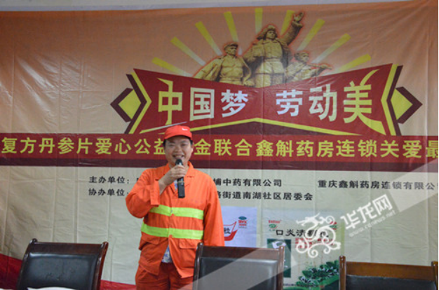最近正值感冒、流感高發(fā)期,環(huán)衛(wèi)工人作為戶外工作者,在戶外清潔工作面對氣候變化,更易患感冒。昨日,白云山復(fù)方丹參片愛心公益基金聯(lián)合鑫斛藥房連鎖在重慶開展“中國夢 勞動美——白云山復(fù)方丹參片愛心公益基金關(guān)愛最美勞動者健康行”系列活動,呼吁大家共同關(guān)注那些在平凡崗位中默默辛勤工作的勞動者,關(guān)愛勞動者們的身體健康。