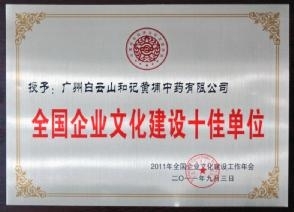 9月3日,“2011年全國(guó)企業(yè)文化建設(shè)工作年會(huì)”在大連隆重召開。在活動(dòng)揭曉的全國(guó)企業(yè)文化建設(shè)十佳單位、全國(guó)企業(yè)文化建設(shè)50強(qiáng)、全國(guó)企業(yè)文化建設(shè)先進(jìn)單位、全國(guó)企業(yè)文化建設(shè)先進(jìn)基層黨組織等榜單上,白云山和黃、五糧液等為中國(guó)企業(yè)文化建設(shè)做出卓越貢獻(xiàn)的十家企業(yè)被授予“全國(guó)企業(yè)文化建設(shè)十佳單位”大獎(jiǎng)。該評(píng)選活動(dòng)由國(guó)家文化部直屬的中國(guó)社會(huì)經(jīng)濟(jì)文化交流協(xié)會(huì)等組織聯(lián)合開展。