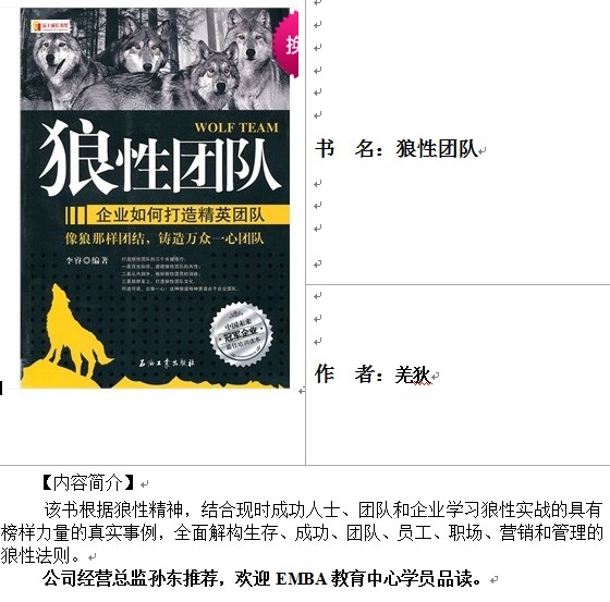 【推薦書目】狼性團隊