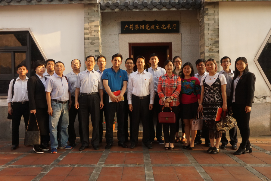 市人社局人事處黨支部和信訪中心黨支部在廣藥集團(tuán)黨建文化展館前合影
