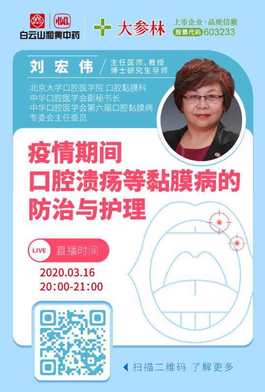 直播就在明天!北京大學(xué)口腔醫(yī)學(xué)院口腔黏膜專家劉教授在線為您支招!